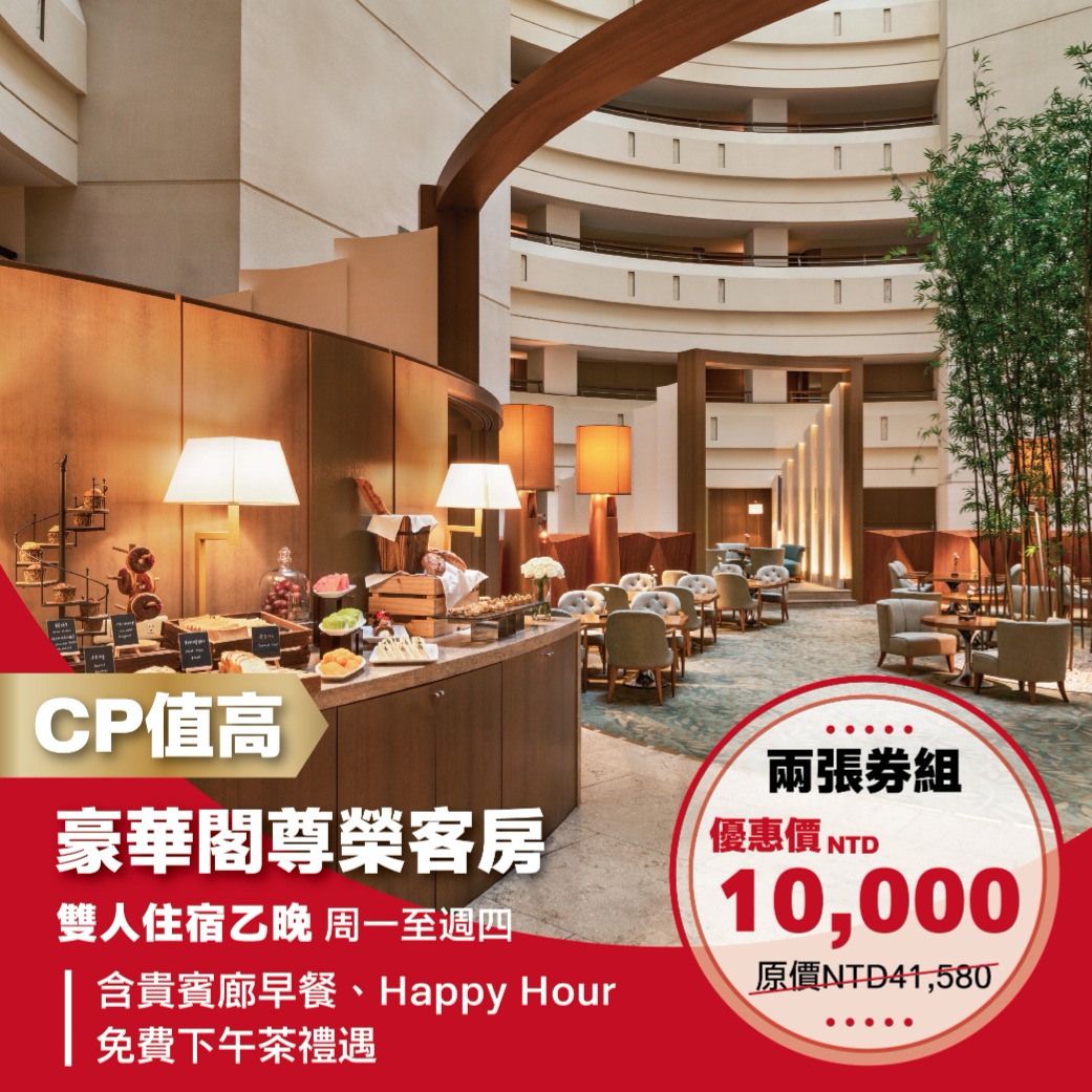 《 豪華閣尊榮客房 雙人平日住宿乙晚含翌日早餐》兩張券/組