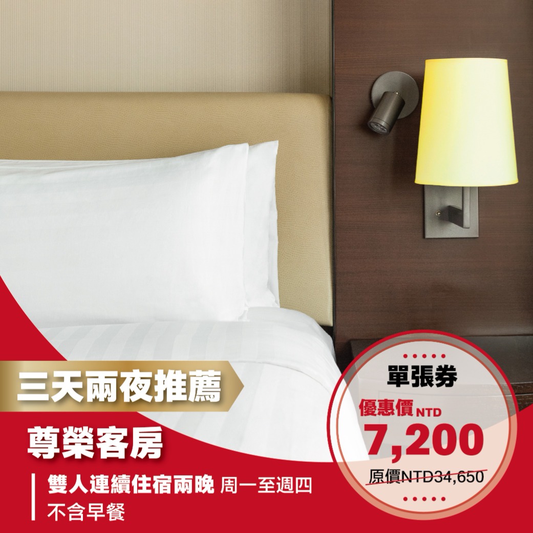 《尊榮客房 雙人平日連續住宿兩晚》單張券