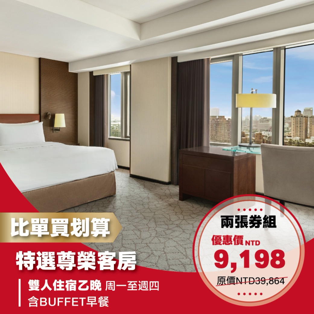 《特選尊榮客房 雙人平日住宿乙晚含翌日早餐》兩張券/組