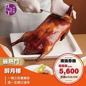 38F 醉月樓《一鴨三吃饗樂券》兩張券/組