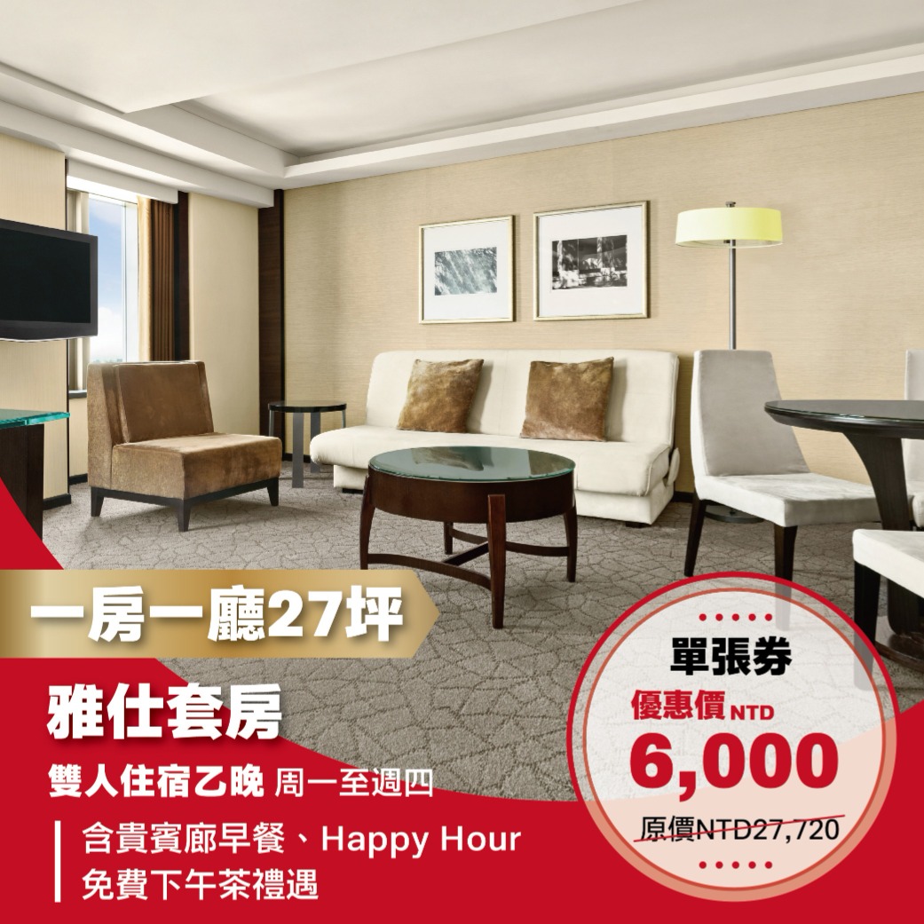 《雅仕套房 雙人平日住宿乙晚含翌日早餐》單張券