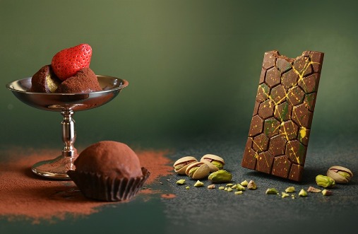 嚴選義大利西西里、西班牙與地中海產區開心果,搭配法國 Weiss 精品巧克力,打造濃郁卻不厚重、層次清晰的風味表現。「經典杜拜巧克力」以巧克力包覆內餡,主打外脆與濃郁層次;而韓國流行的「Dujjonku杜拜巧克力Q餅」,則以Q軟餅體結合相同內餡,呈現外Q、內脆的口感對比。