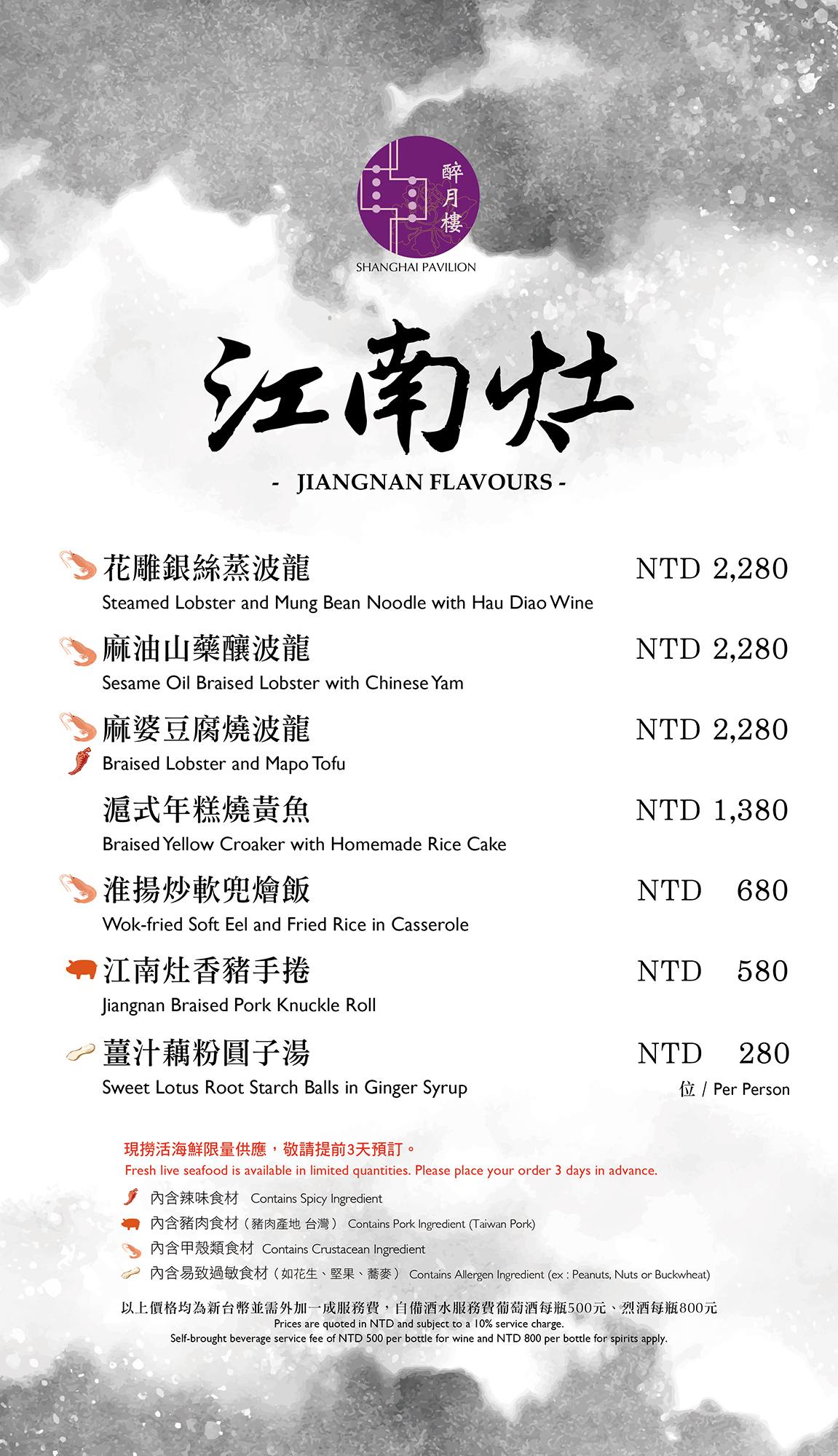 嚴選食材、細火慢工,展現江南料理講究「柔、香、層次分明」的特色,由滷香入味的豬手捲、紅亮醬香的年糕燒黃魚,到鍋氣鮮香的鱔魚炒飯與暖心薑汁藕粉圓子。